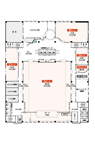 当ビルの中で一番大きなホールで、多くの企業様にご利用いただいております。
