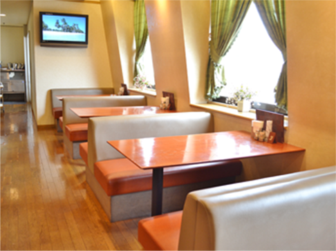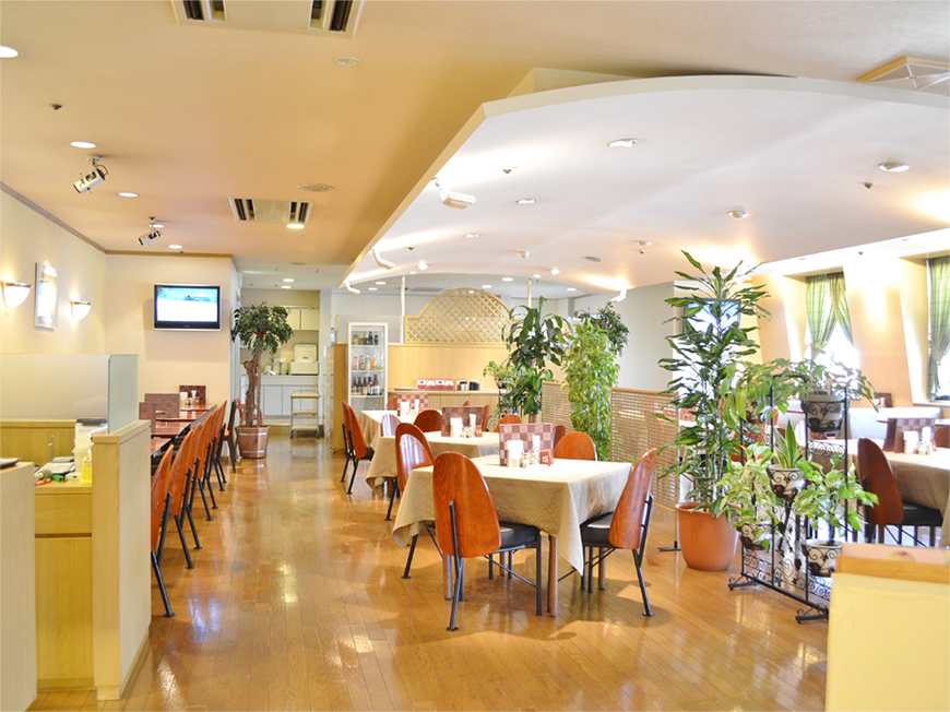 FFBホール8階にある「レストランまゆ」はゆとりある90席のテーブル席でお食事や喫茶の時間をゆっくりとお楽しみいただけます。
